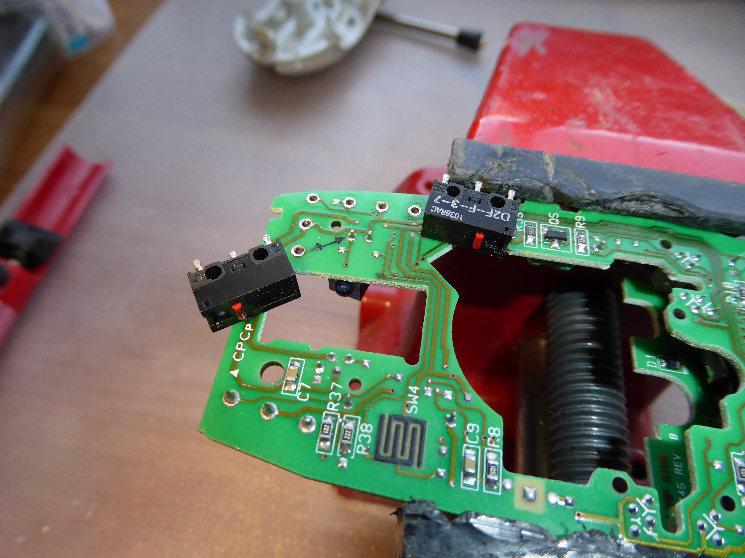 Well... I'm still learning about publishing contents 😊 Excuse me for repeating the same previous post, this time the videos are re-coded for a better compatibility with more platforms (I hope) After trying several combinations, I found the best compatibility in .mp4 format, x264 video codec. Utility used for re-code: Any Video Converter Desoldering - Soldering Practices We're using this old wireless mouse to take a look to some electrical desoldering - soldering basics. It has a true problem: Left key switch activation has been getting harder and harder, making it uncomfortable for double click, or even for single click push. This mouse has three switches, being the central one in perfect condition and nearly unused in daily routine. The main objective is to see how to unsolder for swapping both switches and how to solder again. The secondary objective is to recover this mouse to a comfortable use, instead of discarding it. (Yes, I'm a hard recycler, you know ;-) And a tertiary goal would be to encourage someone to take his/her own desoldering - soldering practices. Will you? Any electronics scrap would be useful as practicing material... Let's start... Ooops! Two philips screws removed, and we have the mouse torn apart into pieces. Here we have a close look of the main circuit. The two microswitches for left and right keys are clearly visible, and the third one is partially hidden under the wheel mechanism. The wheel mechanism is esasily removed by grasping two plastic tabs, and we have at sight the two implied microswitches. I've marked the defective left key microswitch with a black dot, for not giving any chance to get confused with the good one after desoldering both. For a better handling while desoldering, I've held the circuit at a holding clamp. Now we are desoldering the three electrical terminals for both microswitches. Several tips here to take in mind: - Be patient to wait for the soldering iron to reach its right working temperature. If it is not hot enough, soldering tin will not get completely fluid. - I'm using a desoldering pump. Charge the desoldering pump plunger by pressing it to its latching position. - Heat each terminal until the soldering tin is molten, testing it by pushing the terminal and checking that it tilts. But not for too long: the microswitches have a plastic body that would melt if averheated. - Bring the desoldering pump nozzle as close as possible to the soldering point, separate the soldering iron tip, and immediately press the desoldering pump aspirating button. These operations can be seen in sequence at the following video: After desoldering the terminals, push them gently to check that they are moving free on its mounting hole at printed circuit board (PCB). It can be seen at the following video: If any of them doesn't get free, it is usually better to re-solder with fresh soldering tin, and then desoldering again. When every terminals are free, it will be possible to extract the microswitch by pulling it and tilting with a zigzag movement, as shown at this video: Following the related procedure, both microswitches are released now. At this other image can be seen the employed desoldering pump, the mouse PCB, the holding clamp, the soldering tin reel, and soldering tin leftovers from desoldering. Now we have swapped the two microswitches, and both are inserted at their new locations, ready for soldering. Several other tips: - I'm temporary fixing the microswitch central terminal by means of a small amount of fresh soldering tin, while pushing it at its final position. - I'm soldering definitely the other two terminals, melting fresh soldering tin at each terminal base, then ending with an ascending movement of the soldering iron tip along the terminal. I'm being brief in that operations, for not heating the terminals too much. Otherwise, microswitch plastic body might overheat and deform. - Then, I'm soldering definitely the central terminal the same way. All these steps can be seen at the next video: Here are the finished electrical connections after soldering. And here is the final look of mouse PCB after swapping micrositches. It's moment for re-mounting and testing: Ok! And finally, a listing image of the employed material, hoping you have enjoyed it as I did 🤗️ |