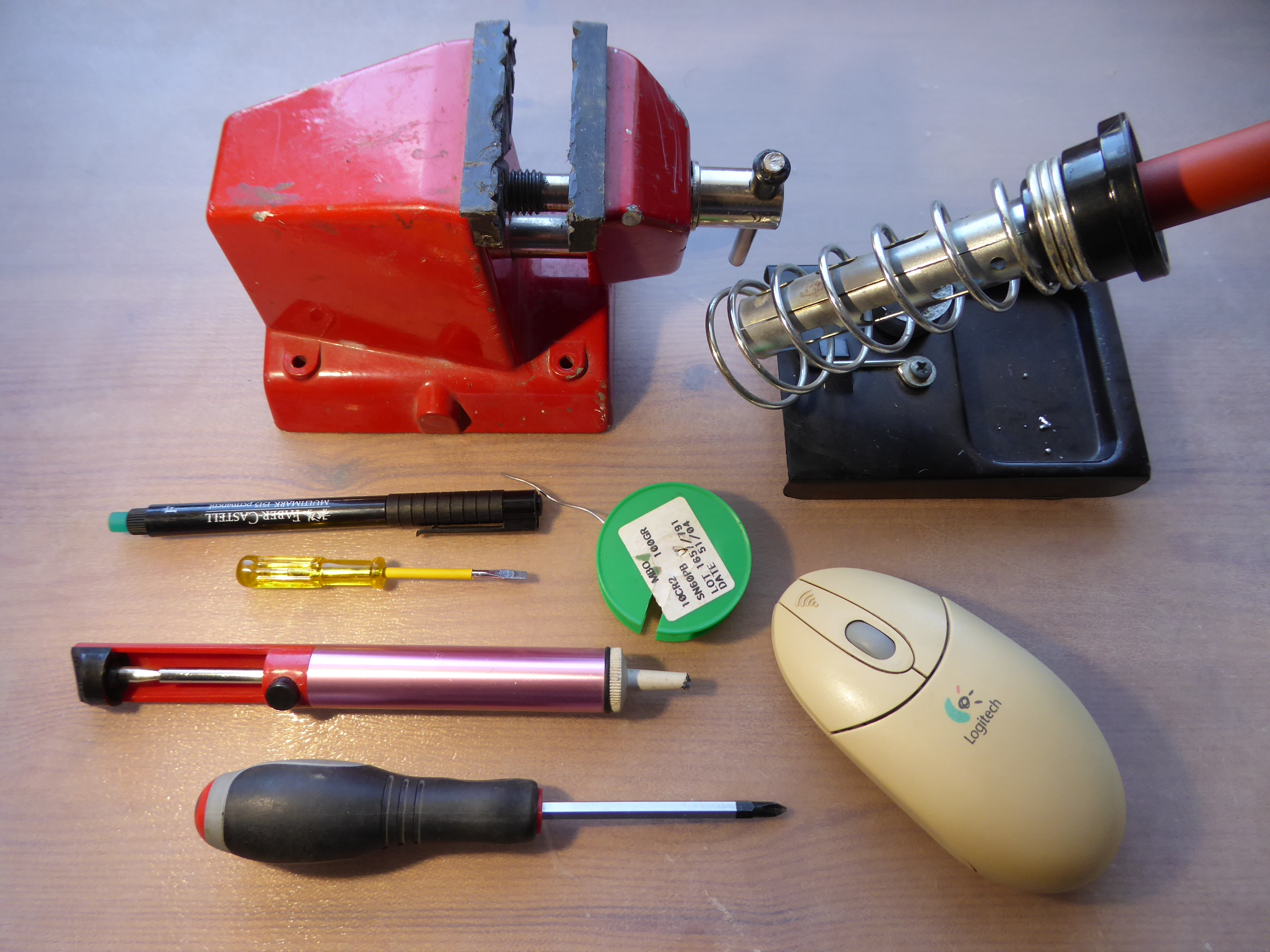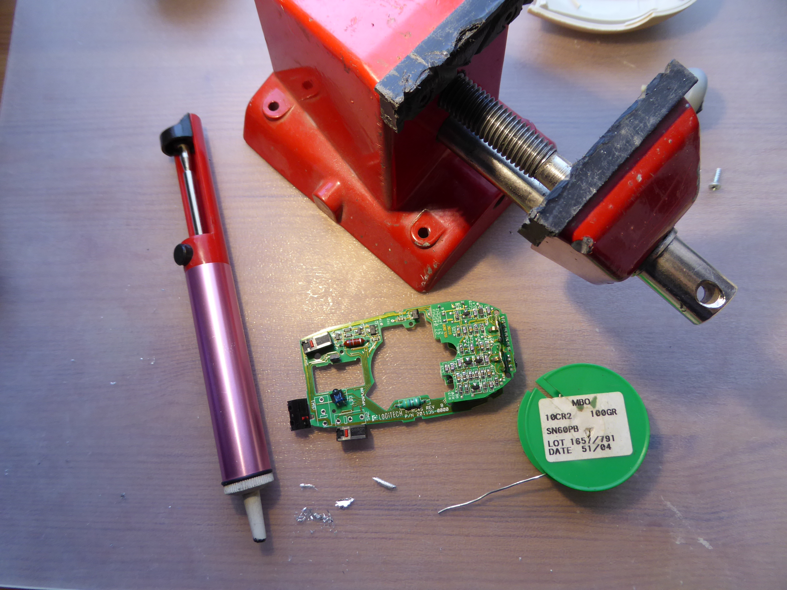 Desoldering - Soldering Practices We're using this old wireless mouse to take a look to some electrical desoldering - soldering basics. It has a true problem: Left key switch activation has been getting harder and harder, making it uncomfortable for double click, or even for single click push. This mouse has three switches, being the central one in perfect condition and nearly unused in daily routine. The main objective is to see how to unsolder for swapping both switches and how to solder again. The secondary objective is to recover this mouse to a comfortable use, instead of discarding it. (Yes, I'm a hard recycler, you know ;-) And a tertiary goal would be to encourage someone to take his/her own desoldering - soldering practices. Will you? Any electronics scrap would be useful as practicing material... Let's start... Ooops! Two philips screws removed, and we have the mouse torn apart into pieces. Here we have a close look of the main circuit. The two microswitches for left and right keys are clearly visible, and the third one is partially hidden under the wheel mechanism. The wheel mechanism is esasily removed by grasping two plastic tabs, and we have at sight the two implied microswitches. I've marked the defective left key microswitch with a black dot, for not giving any chance to get confused with the good one after desoldering both. For a better handling while desoldering, I've held the circuit at a holding clamp. Now we are desoldering the three electrical terminals for both microswitches. Several tips here to take in mind: - Be patient to wait for the soldering iron to reach its right working temperature. If it is not hot enough, soldering tin will not get completely fluid. - I'm using a desoldering pump. Charge the desoldering pump plunger by pressing it to its latching position. - Heat each terminal until the soldering tin is molten, testing it by pushing the terminal and checking that it tilts. But not for too long: the microswitches have a plastic body that would melt if averheated. - Bring the desoldering pump nozzle as close as possible to the soldering point, separate the soldering iron tip, and immediately press the desoldering pump aspirating button. These operations can be seen in sequence at the following video: After desoldering the terminals, push them gently to check that they are moving free on its mounting hole at printed circuit board (PCB). It can be seen at the following video: If any of them doesn't get free, it is usually better to re-solder with fresh soldering tin, and then desoldering again. When every terminals are free, it will be possible to extract the microswitch by pulling it and tilting with a zigzag movement, as shown at this video: Following the related procedure, both microswitches are released now. At this other image can be seen the employed desoldering pump, the mouse PCB, the holding clamp, the soldering tin reel, and soldering tin leftovers from desoldering. Now we have swapped the two microswitches, and both are inserted at their new locations, ready for soldering. Several other tips: - I'm temporary fixing the microswitch central terminal by means of a small amount of fresh soldering tin, while pushing it at its final position. - I'm soldering definitely the other two terminals, melting fresh soldering tin at each terminal base, then ending with an ascending movement of the soldering iron tip along the terminal. I'm being brief in that operations, for not heating the terminals too much. Otherwise, microswitch plastic body might overheat and deform. - Then, I'm soldering definitely the central terminal the same way. All these steps can be seen at the next video: Here are the finished electrical connections after soldering. And here is the final look of mouse PCB after swapping micrositches. It's moment for re-mounting and testing: Ok! And finally, a listing image of the employed material, hoping you have enjoyed it as I did 🤗️ |